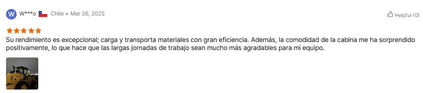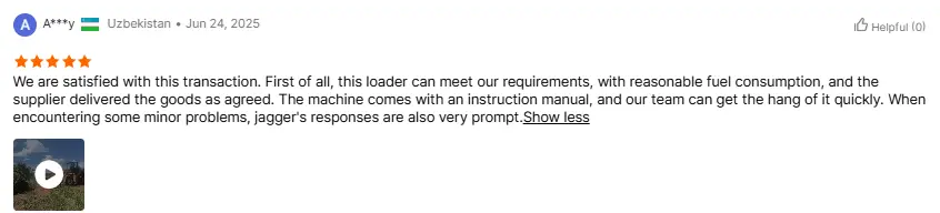 Pelanggan dari Rusia segera melakukan test drive loader seberat 5 ton tersebut setelah menerimanya. Mereka berkata, "Loader ini bahkan lebih lincah daripada yang saya perkirakan. Loader ini beroperasi dengan lancar tanpa guncangan apa pun." Hal ini juga ditegaskan oleh atasan kami. Dan tanggapan penjualan Anda sangat cepat dan bertanggung jawab. Anda adalah mitra yang dapat dipercaya.